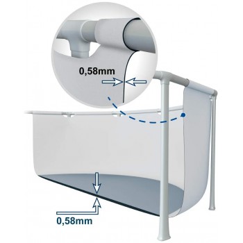 Il modello ha una struttura robusta in metallo, che supporta il telo ed una pompa che esegue il lavoro di filtraggio dell'acqua, ricircolo e svuotamento. Risultano particolarmente belle per l'installazione in giardino.