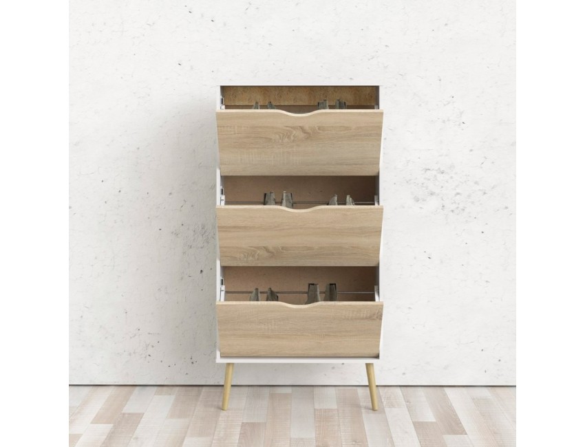 Scarpiera 139 cm Rovere e Bianco opaco con tre ribalte