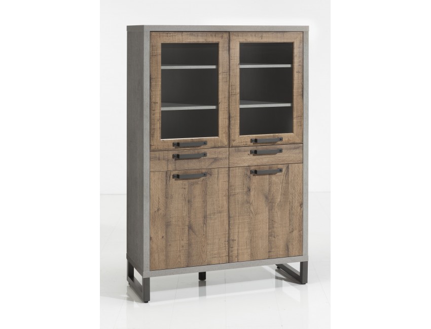 Vetrina 110xH170 cm con due cassetti e quattro ante Rovere e Cemento
