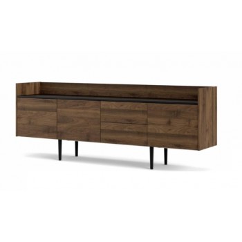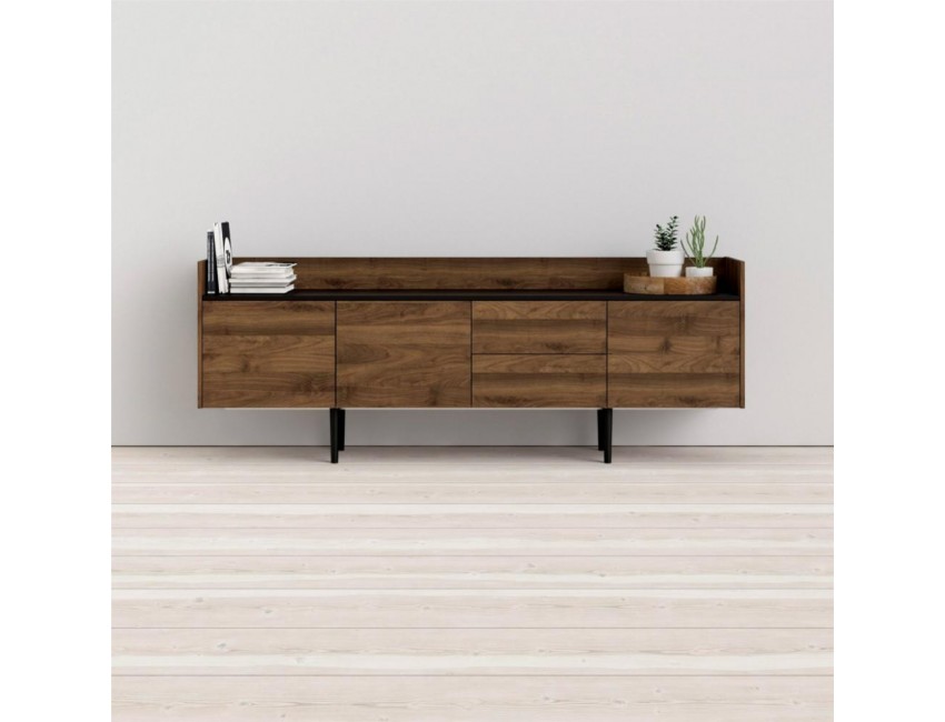Madia soggiorno 195x40 cm Nero opaco e Noce con tre ante e due cassetti