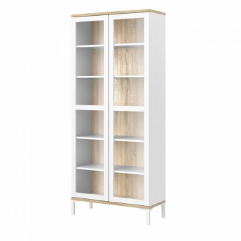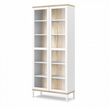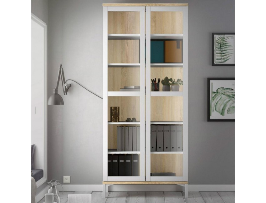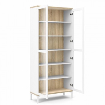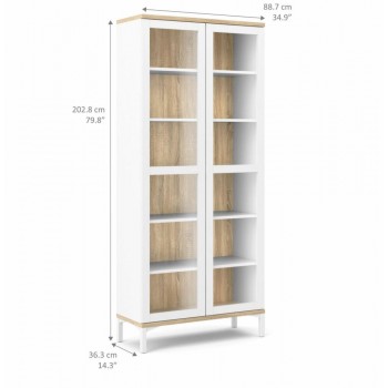 Vetrina soggiorno 203 cm Bianco opaco e Rovere con due ante e cinque ripiani
