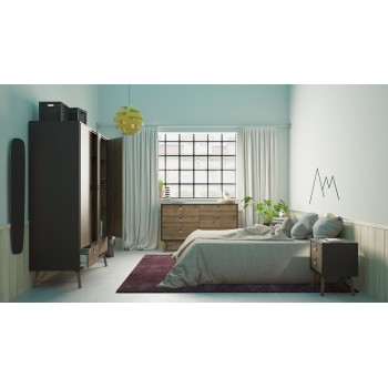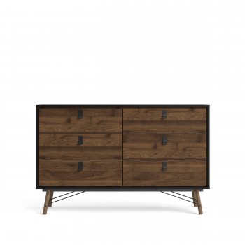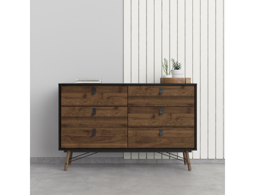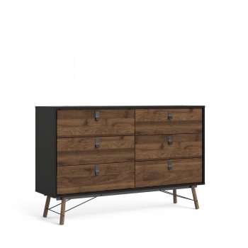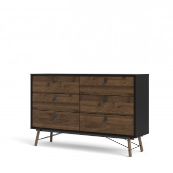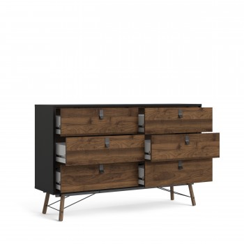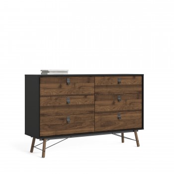Cassettiera 150xH95 cm Nero opaco e Noce con 6 cassetti
