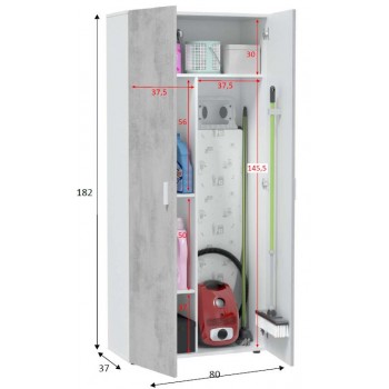 Armadio multiuso 80x182H cm Bianco opaco e Cemento con due ante