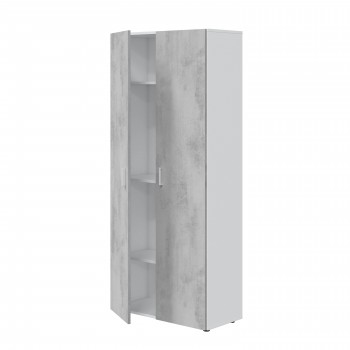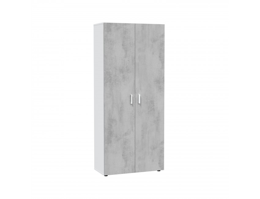 Armadio multiuso 80x182H cm Bianco opaco e Cemento con due ante e tre ripiani interni