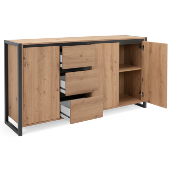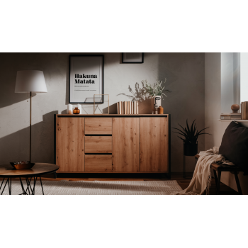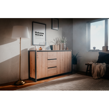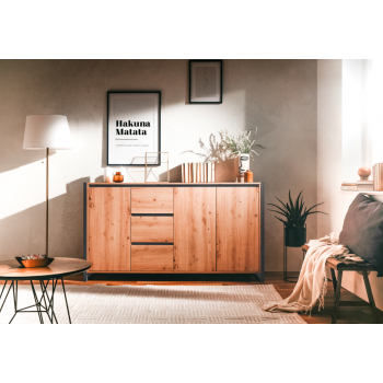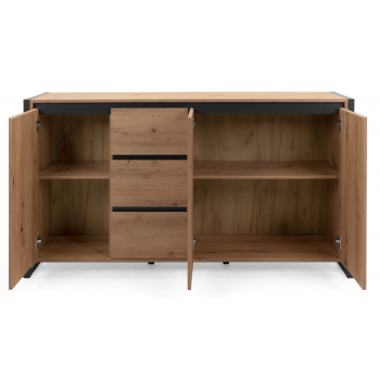 Madia 160x40 cm Minorca Rovere artigianale e Grigio antracite con tre ante e tre cassetti