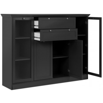 - Dotata di quattro ante, due cassetti e cinque ripiani interni regolabili in altezza