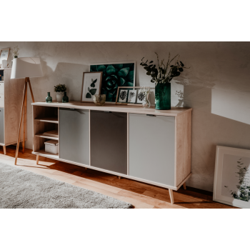 Questa madia è progettata per essere funzionale e facile da abbinare con qualsiasi tipologia di arredamento per soggiorno. Risulta anche molto gradevole esteticamente