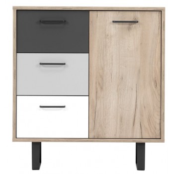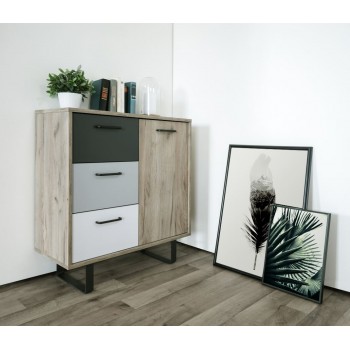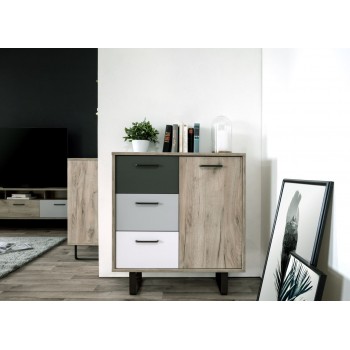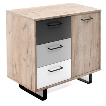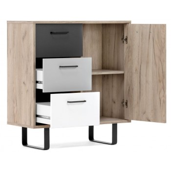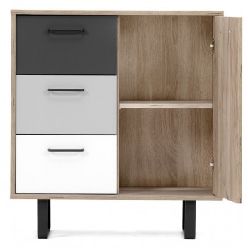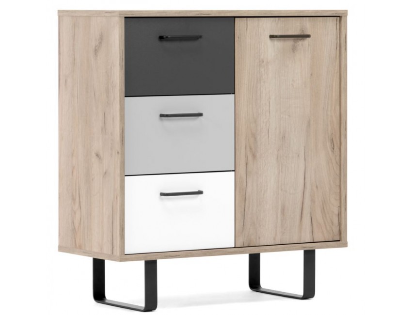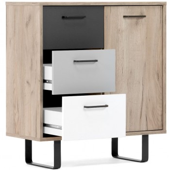 Madia 80x35 cm Aruba con un'anta Rovere chiaro e tre cassetti tricolore
