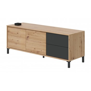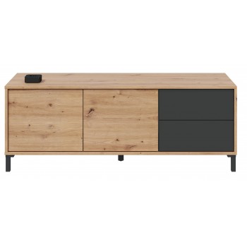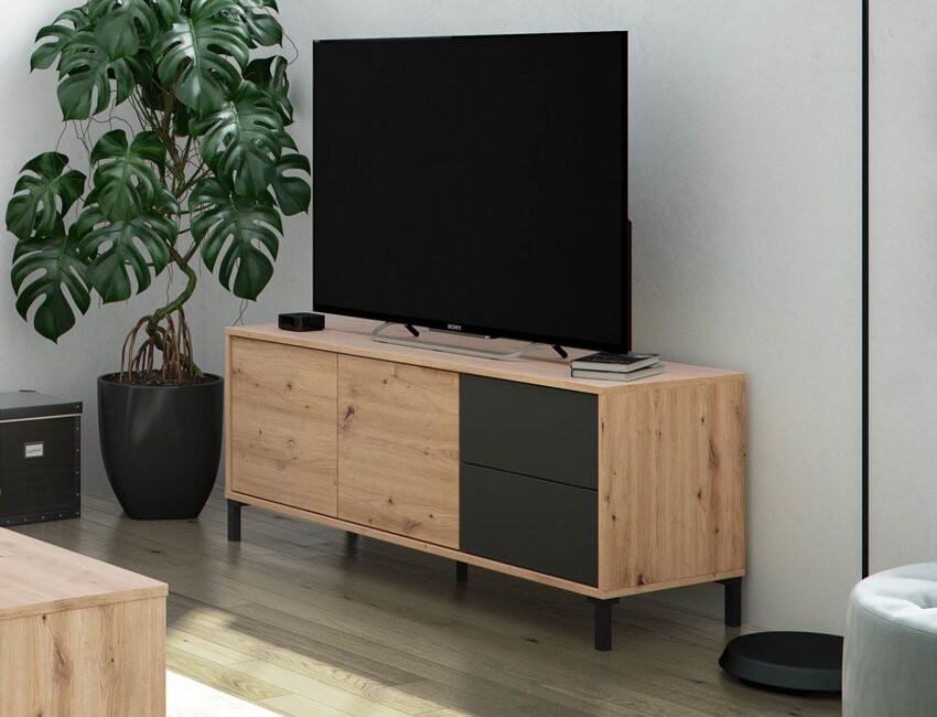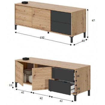 Mobile soggiorno porta Tv 130 cm Rovere nordico e Grigio antracite con 2 ante e 2 cassetti