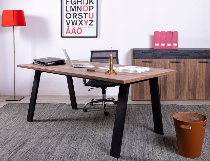 Scrivania da ufficio 240x80 cm rovere con gambe in metallo verniciato Grigio antracite