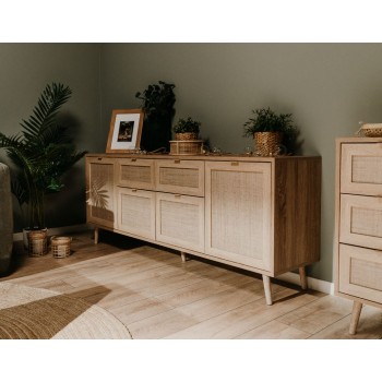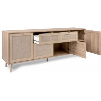 Madia 180x71H cm Rovere chiaro con quattro ante e due cassetti
