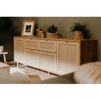 • Si presenta in un elegante colore Rovere chiaro con effetto vimini sulle ante