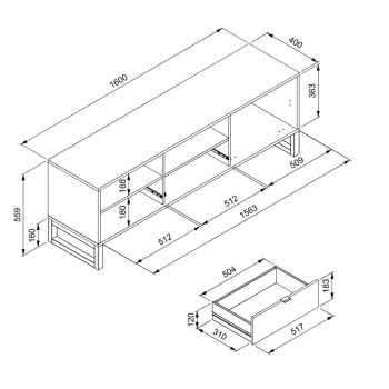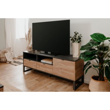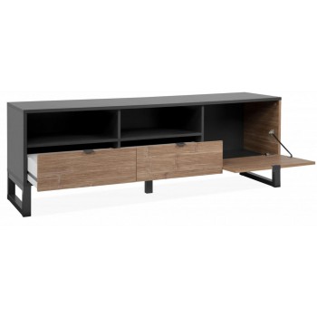 Mobile Porta TV 160 cm Manhattan Bamboo e Grigio antracite con una ribalta e due cassetti