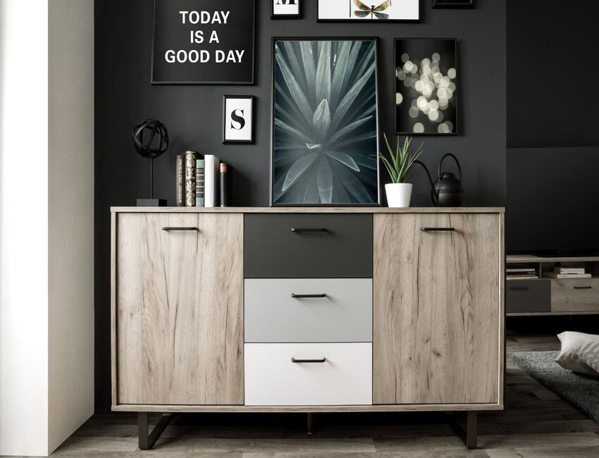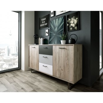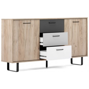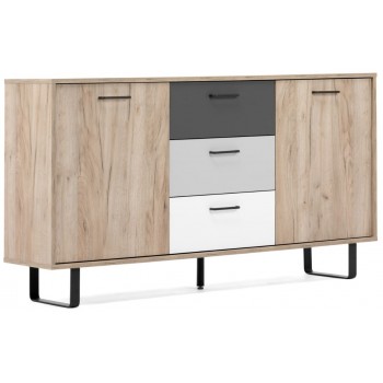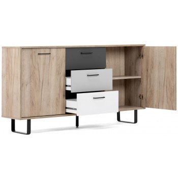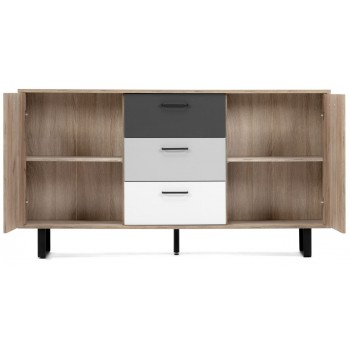 Madia 160x86H cm Aruba con due ante Rovere chiaro e tre cassetti tricolore