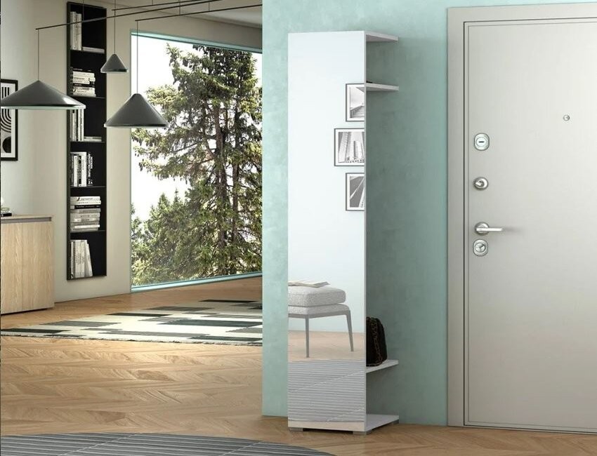 Appendiabiti a colonna 35x195H cm Bianco frassinato con Specchio