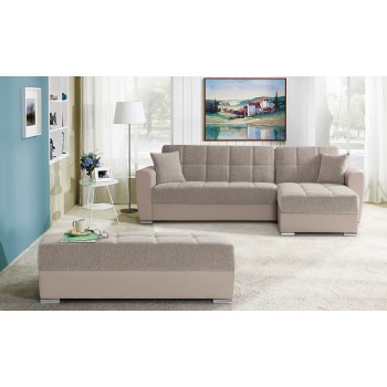 Divano letto ad angolo 256X145 cm Orchidea colore Tortora in ecopelle e tessuto