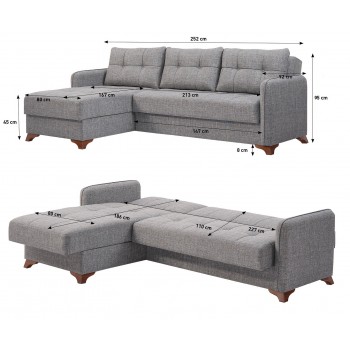 Divano letto ad angolo 252X167 cm Lilia colore Grigio