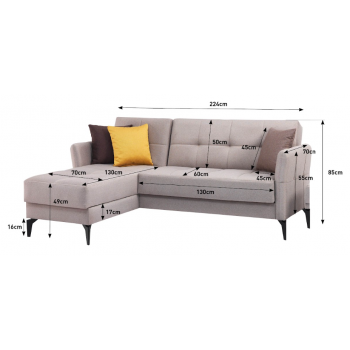 Divano letto ad angolo 224X130 cm Margherita colore Tortora chiaro