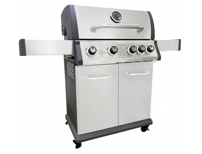 • Con 4 fuochi e 1 fornello laterale in acciaio inox