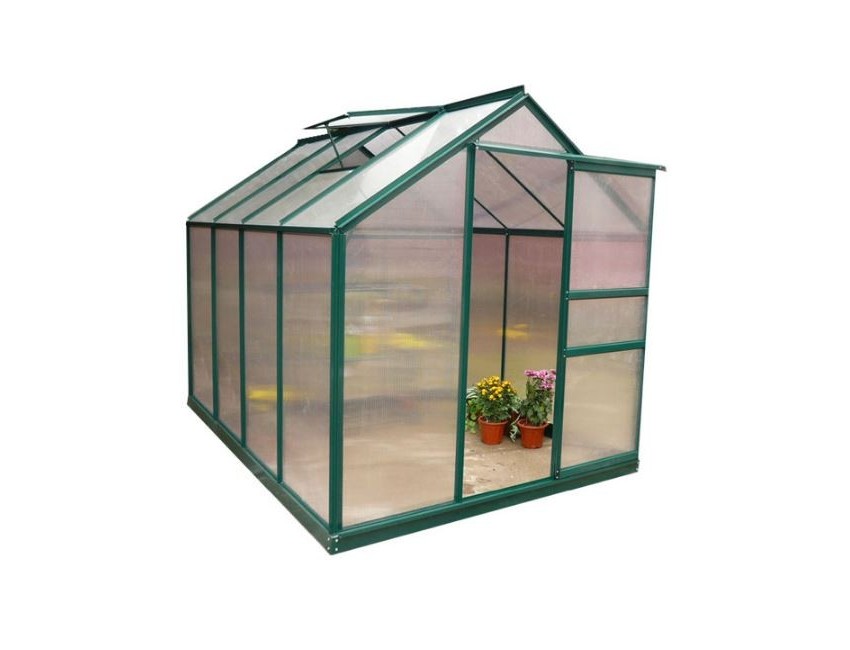 Serra per giardino, struttura in Alluminio verniciato colore Verde, composto da pareti in policarbonato, 1 accesso frontale e 1 finestra per la ventilazione (Prodotto da montare). cm 190 X 252 X h 201 spessore policarbonato mm 3.8