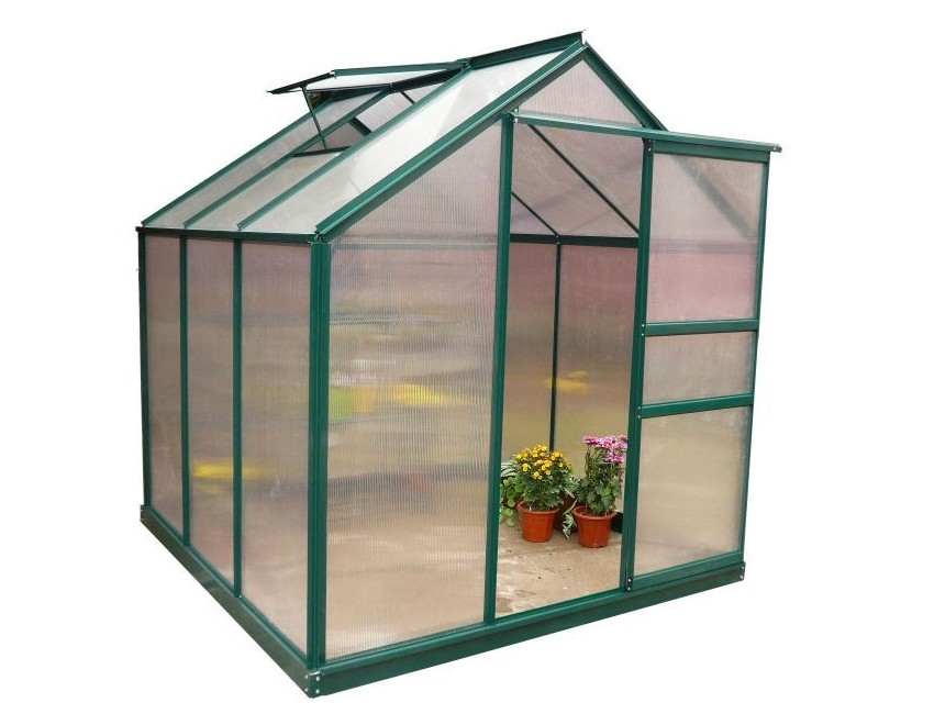 Serra per giardino, struttura in Alluminio verniciato colore Verde, composto da pareti in policarbonato, 1 accesso frontale e 1 finestra per la ventilazione (Prodotto da montare). cm 190 X 192 X h 201 spessore policarbonato mm 3.8.