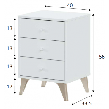 - Cassetti: Pannello di fibre a media densità laccato. (MDF/DM). Spessore: lati 12 mm e profondità 3 mm. Finitura bianca.