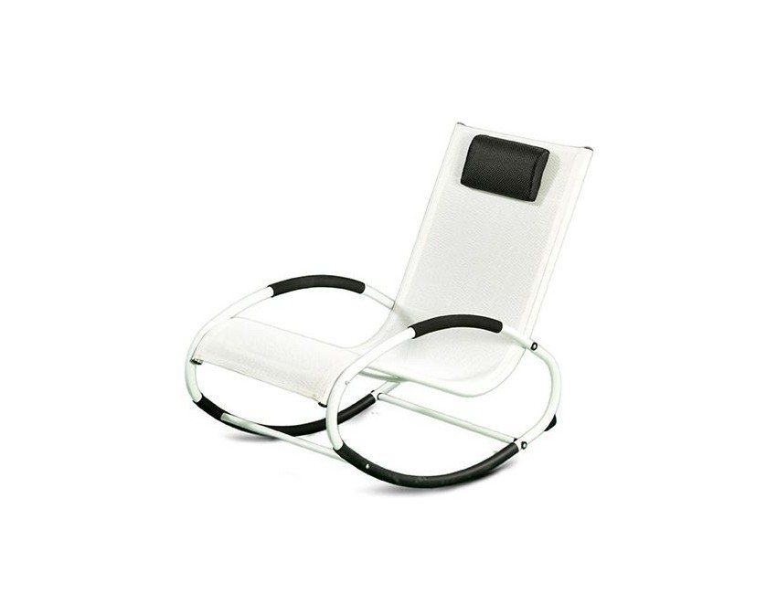 Poltrona a dondolo con braccioli, struttura in Alluminio verniciato a polvere colore Bianco, tessuto Textilene 2X1 colore Bianco, cuscino imbottito colore Nero cm 113 X 63 X h 85 sezione tubolari ø mm 30 X 1.5.