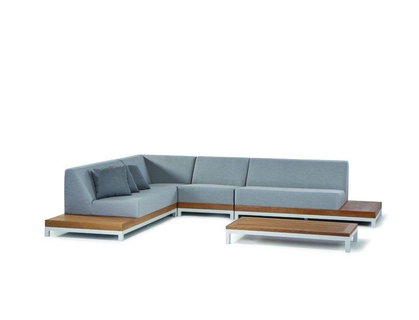 salotto giardino esterno divano angolo tavolino teak grigio design bar SET IVORY