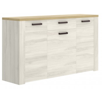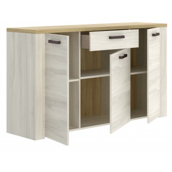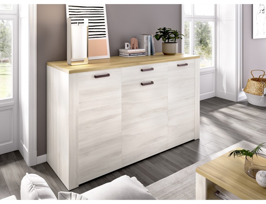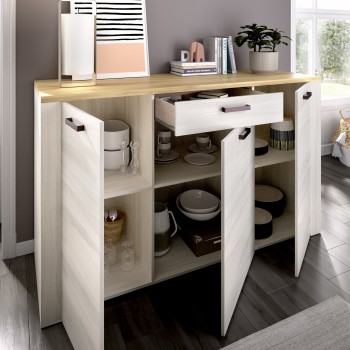 Madia soggiorno 150 cm Amelia Rovere sbiancato e Rovere chiaro con tre ante e un cassetto