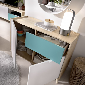 Questa madia è progettata per essere funzionale e facile da abbinare con qualsiasi tipologia di arredamento per soggiorno. Risulta anche molto gradevole esteticamente