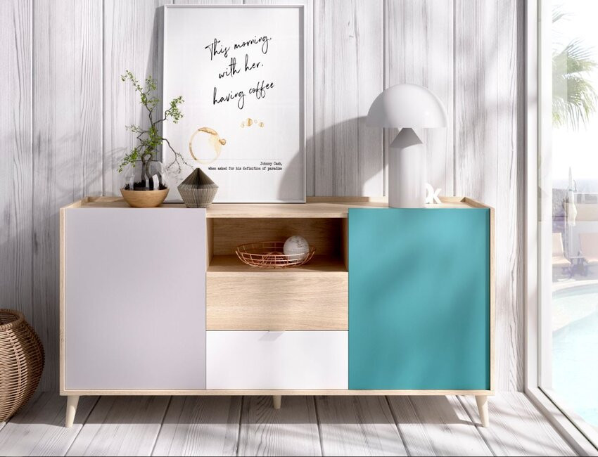 • Accattivante Madia in colori coordinati, perfetta per qualsiasi angolo della tua casa dove hai bisogno di un mobile per espandere il tuo spazio di archiviazione.