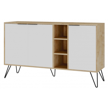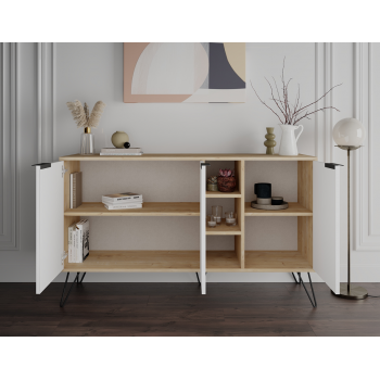 Madia 142x83H cm Daiquiri Rovere chiaro e Bianco opaco con tre ante e tre vani
