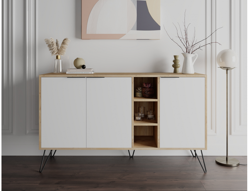 Questa madia è progettata per essere funzionale e facile da abbinare con qualsiasi tipologia di arredamento per soggiorno. Risulta anche molto gradevole esteticamente