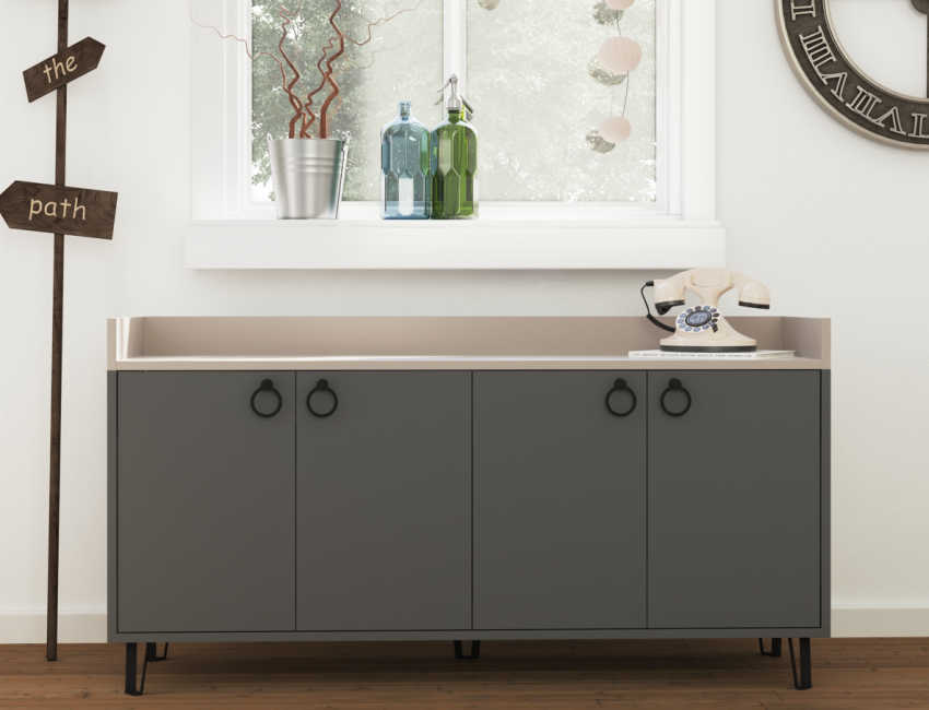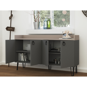 Madia 140x80H cm Bajtra Grigio antracite e Moka chiaro con quattro ante