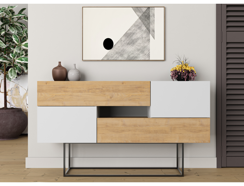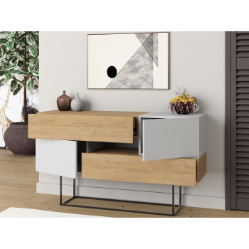 Madia 145x82H cm Arak Rovere chiaro e Bianco opaco con due ante e due cassetti