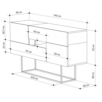 Cassetti: Larghezza 95 cm x Altezza 21 cm