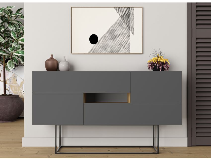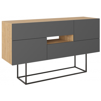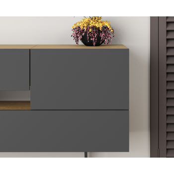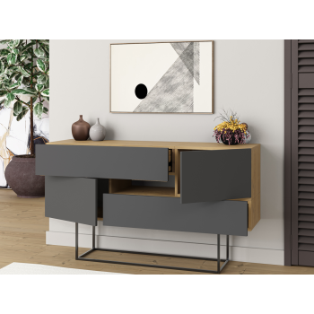 Madia 145x82H cm Arak Grigio antracite e Rovere chiaro con due ante e due cassetti