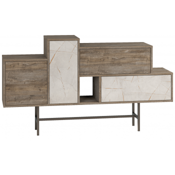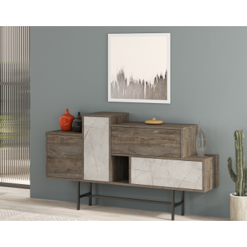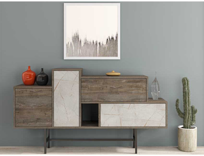 Madia 160x90H cm Martini Caffé scuro ed effetto marmo Bianco con due ante e due cassetti