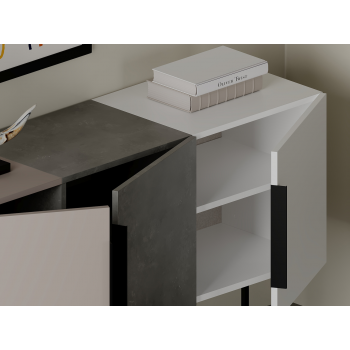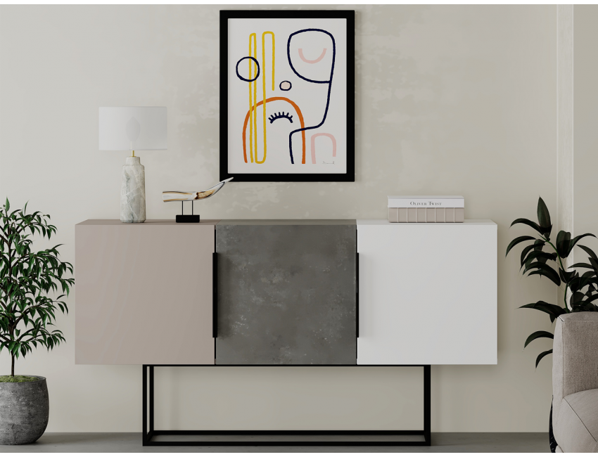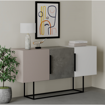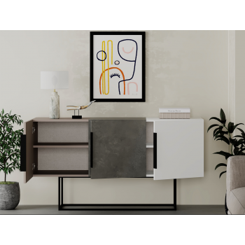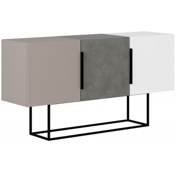 Madia 150x79,5H cm Sling Moka chiaro Grigio retrò e Bianco opaco con tre ante