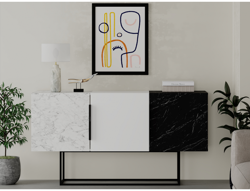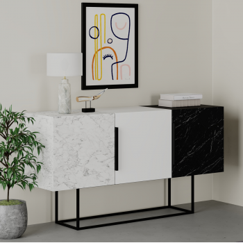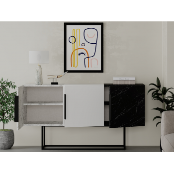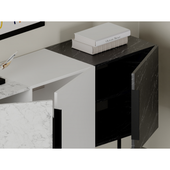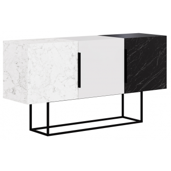 Madia 150x79,5H cm Sling Effetto marmo nero Effetto marmo Carrara e Bianco opaco con tre ante