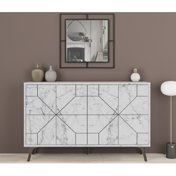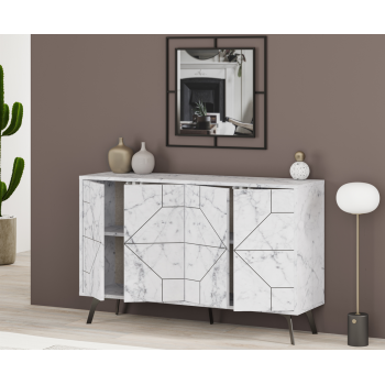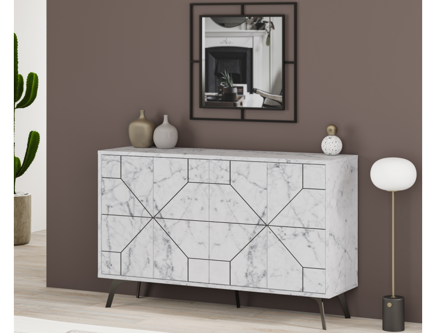 Madia 123x77,4H cm Sherry effetto marmo Carrara con quattro ante