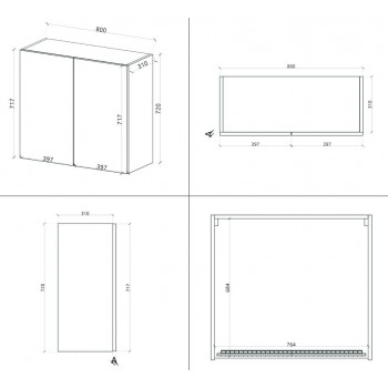 - Ante realizzate con pannelli in agglomerato di particelle di legno sp.18 mm in classe E1, con basso contenuto di formaldeide. Bordi 4 lati incollati con collanti resistenti ad acqua e calore