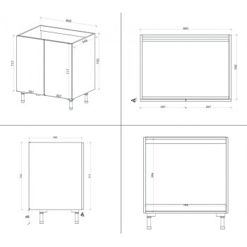 - 2 Ante realizzate con pannelli in agglomerato di particelle di legno sp.18 mm in classe E1, con basso contenuto di formaldeide. Bordi 4 lati incollati con collanti resistenti ad acqua e calore