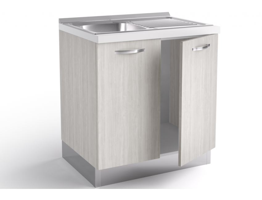 Base sottolavello cucina 80x60xH84 cm in legno Bianco Alaska con lavello in acciaio inox