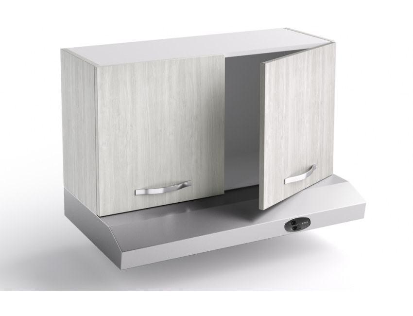 Sopracappa cucina 90x31xH48 cm in legno Bianco Alaska con due ante e depuratore