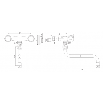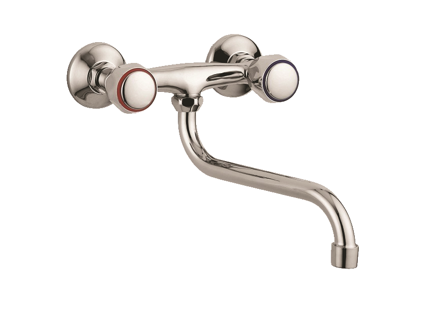 Miscelatore Lavello Opera in ottone cromato con due maniglie e canna ad S