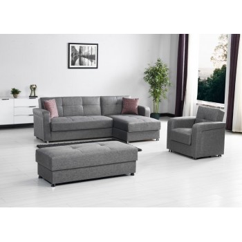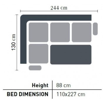• Il divano è reversibile, la penisola può essere posizionata a destra o a sinistra. Inoltre può essere trasformato in un divano letto.