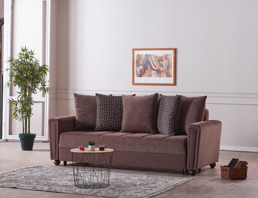 Divano letto tre posti Jersey in tessuto colore Nocciola