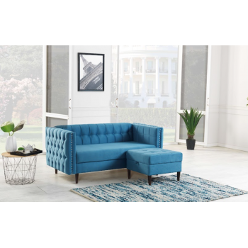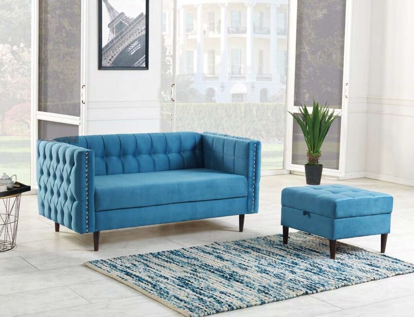 1) Puff di colore Blu (codice prodotto: CITYPUFF) . Piedini alti 10 cm. Dispone di un vano contenitore. Peso 12 kg.