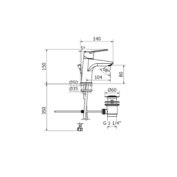 Miscelatore lavabo monocomando in ottone cromato monoforo con dotazione scarico automatico da G 1 1/4" della linea sonic.